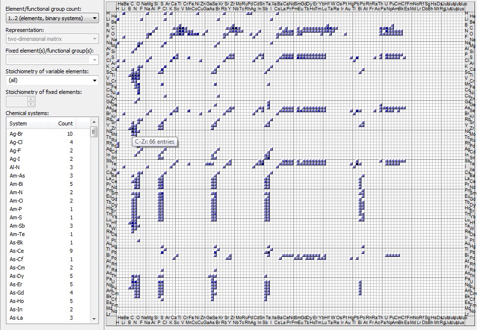 data called "(chemical) system matrix". It provides an overview of how many entries